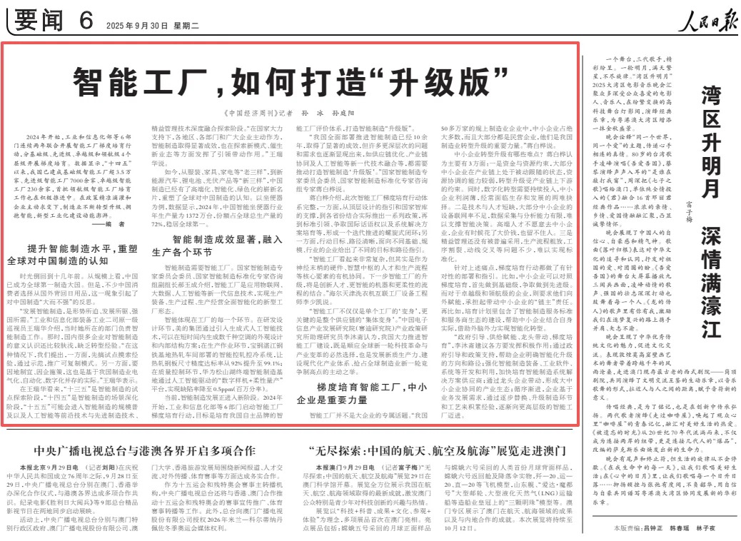 智能工厂并不是大企业的专属话题。“我国50多万家的规上制造业企业中,中小企业占绝大多数,而且大部分都是民营企业,他们是我国制造业转型升级的重要力量。”蒋白桦说。