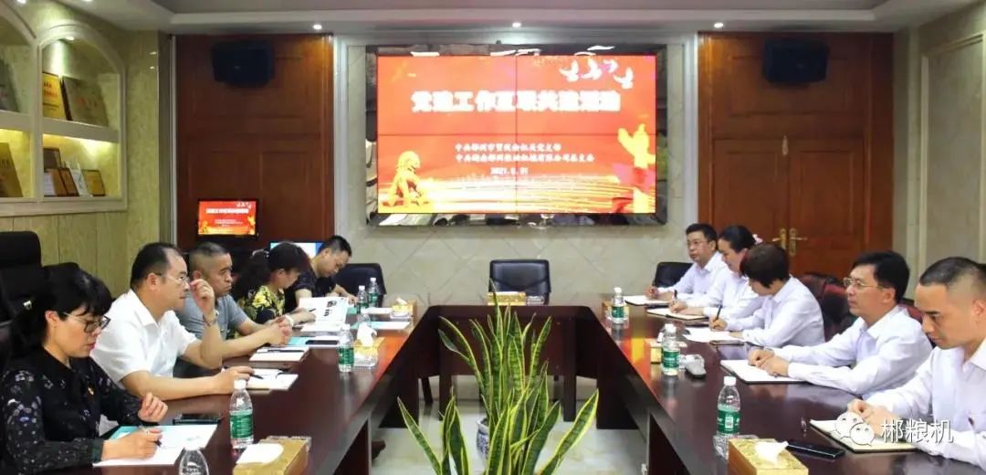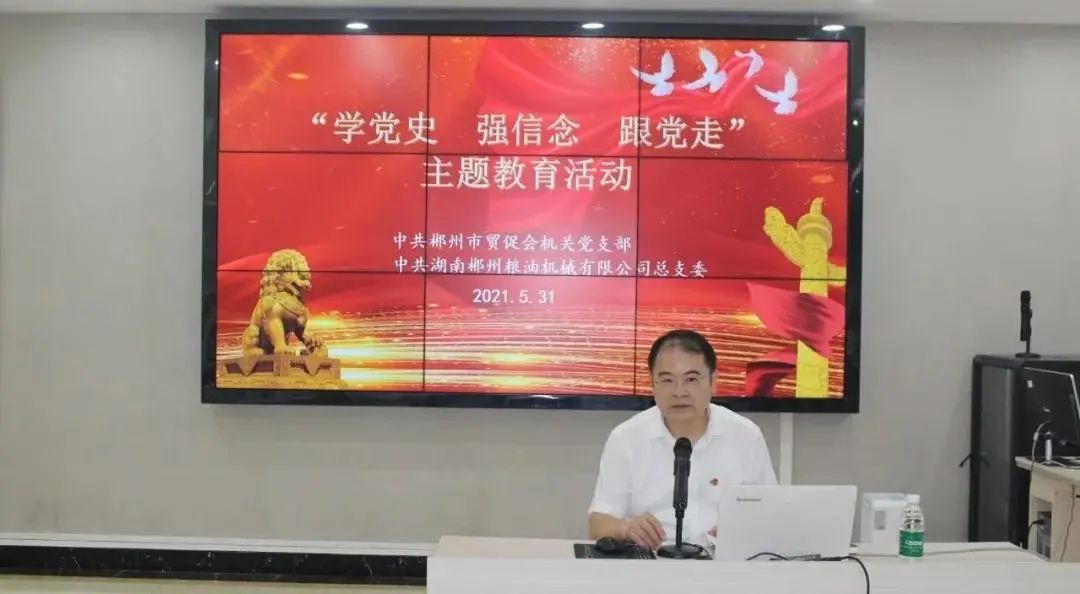 为扎实推进党史学习教育,强化结对共建,进一步深化政企合作。中共湖南郴州粮油机械有限公司总支委联合中共郴州市贸促会机关党支部开展了“学党史 强信念 跟党走”互联共建主题党日活动。