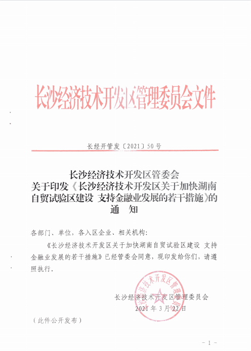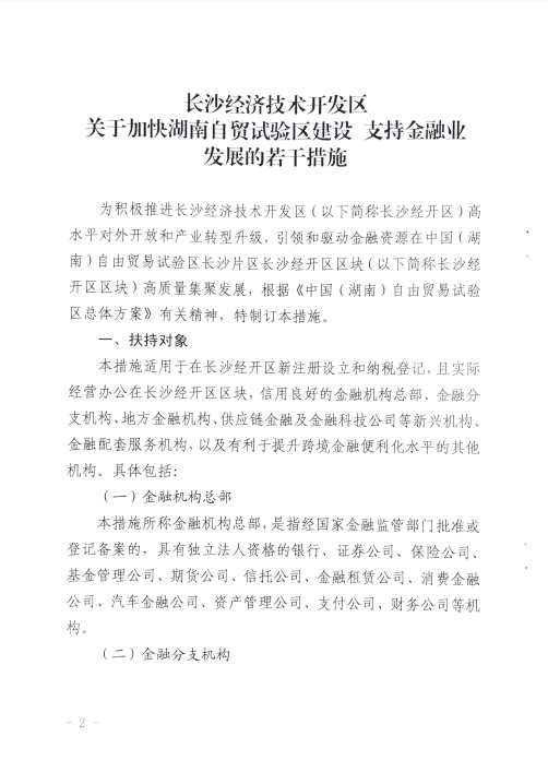 【经开区政策汇编(十)】|长沙经济技术开发区关于加快湖南自贸试验区建设 支持金融业发展的若干措施