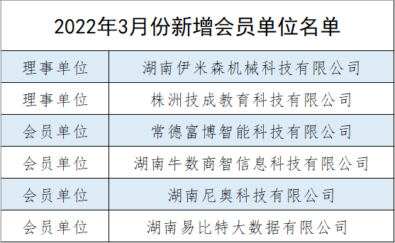 湖南省智能制造协会2022年3月新增会员公示