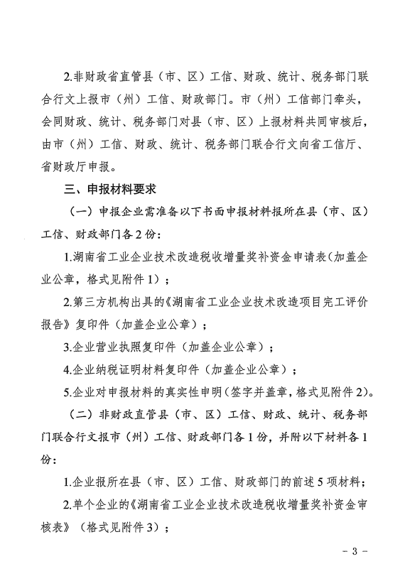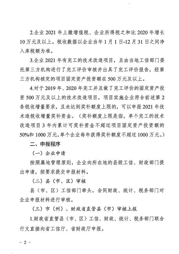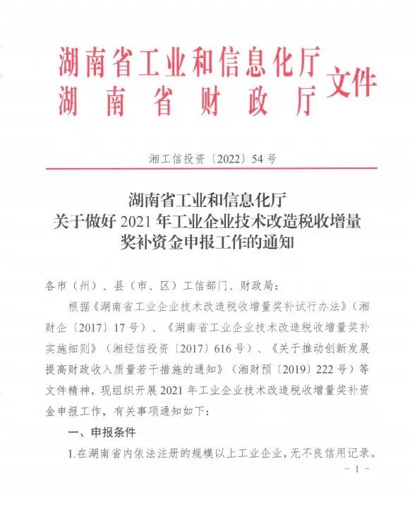 湖南省关于申报2021年工业企业技术改造税收增量奖补资金申报工作的通知