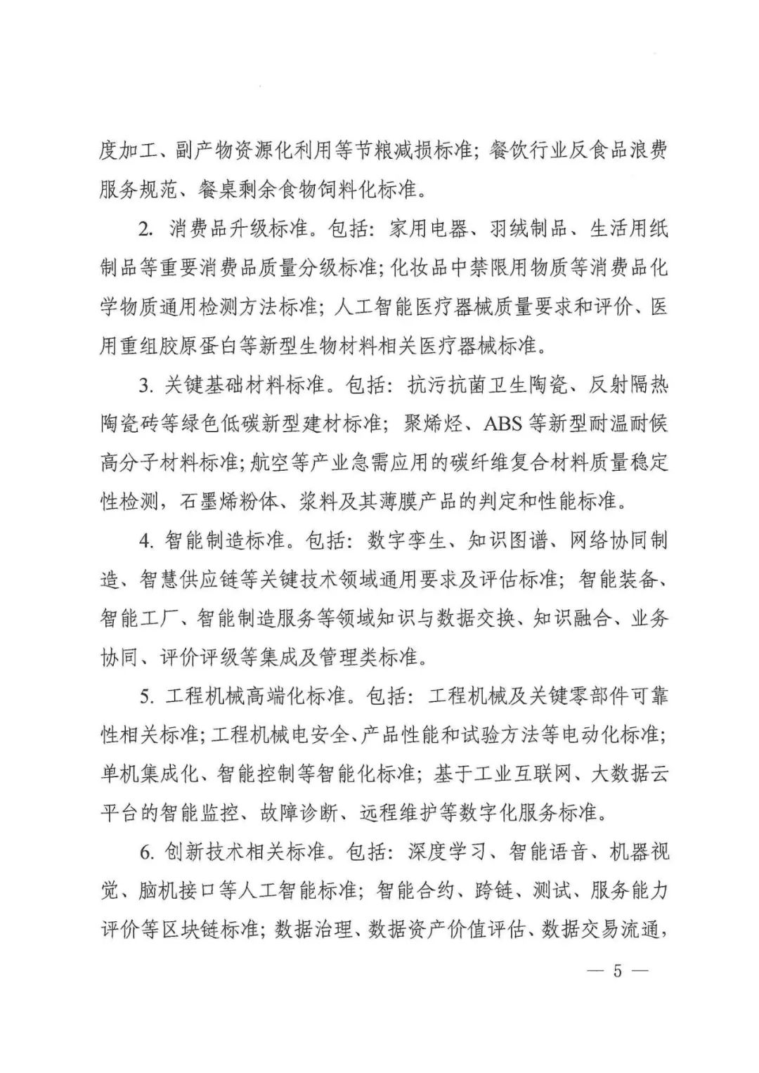——智能制造标准。包括:数字孪生、知识图谱、网络协同制造、智慧供应链等关键技术领域通用要求及评估标准;智能装备、智能工厂、智能制造服务等领域知识与数据交换、知识融合、业务协同、评价评级等集成及管理类标准。