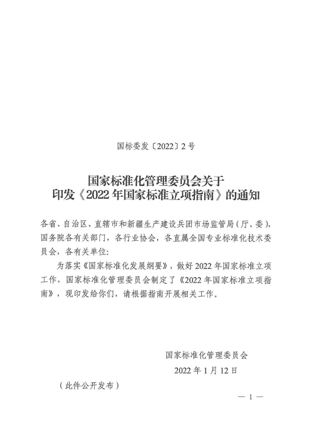 【关注】国家标准化管理委员会印发《2022年国家标准立项指南》