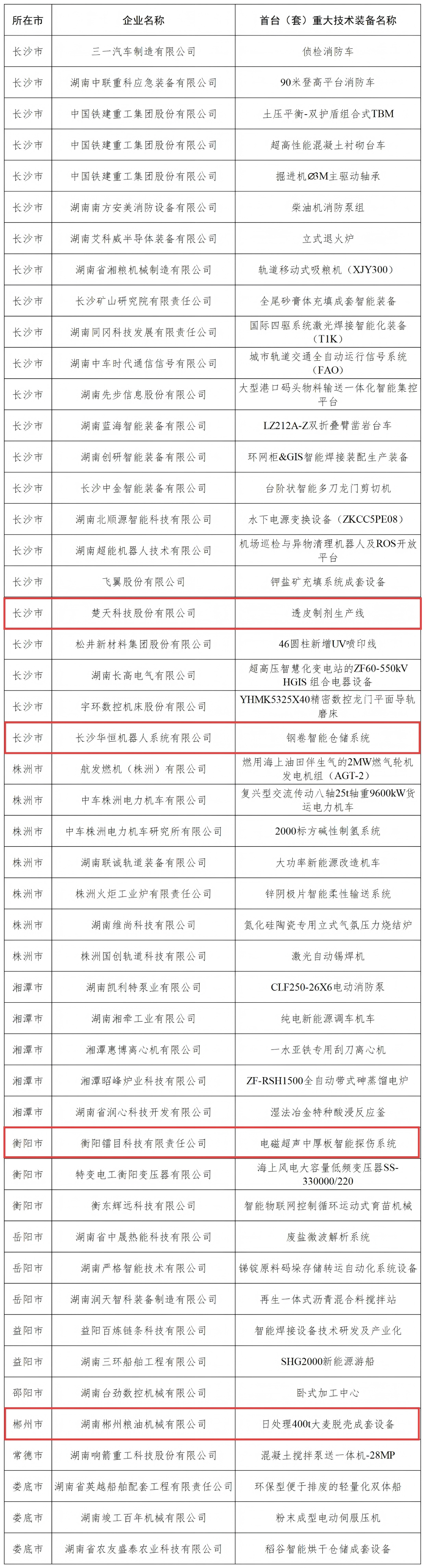 关于公布2025年湖南省首台(套)重大技术装备认定名单的通知