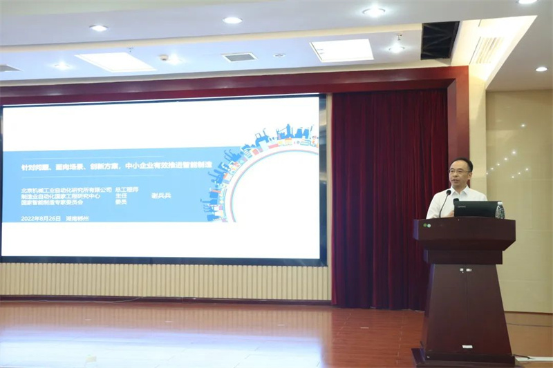 北京机械工业自动化研究所有限公司总工程师谢兵兵作了题为“针对问题、面向场景、创新方案,中小企业有效推进智能制造”的报告。他围绕“智能制造,中小企业如何做”的问题,深入讲解了企业智能制造的实施步骤。他认为,中小企业应从挑战中寻新机,顺应大势;要从场景入手,建立企业改造“自画像”,以自我为主导,一步步实施智能制造改造规划。