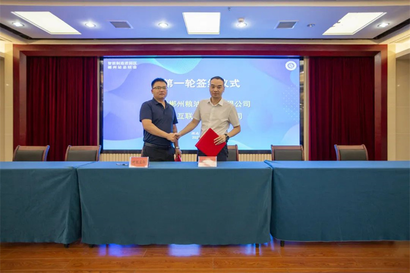 本次会议上,湖南郴州粮油机械有限公司与长沙树根互联技术有限公司签订了合作协议,双方将围绕郴粮机数字化、智能化升级,开展全产业链的技术合作。中信银行与郴州市旗滨光伏玻璃有限公司、湖南田野现代智能装备有限公司等5家企业达成了签约合作,签约贷款金额达6.13亿元。这些项目涉及装备制造、有色金属、电子信息、新材料等重点行业,这次银企合作对提升郴州“智能制造”水平、延长产业链、促进产业结构优化升级,具有十分重要的意义。
