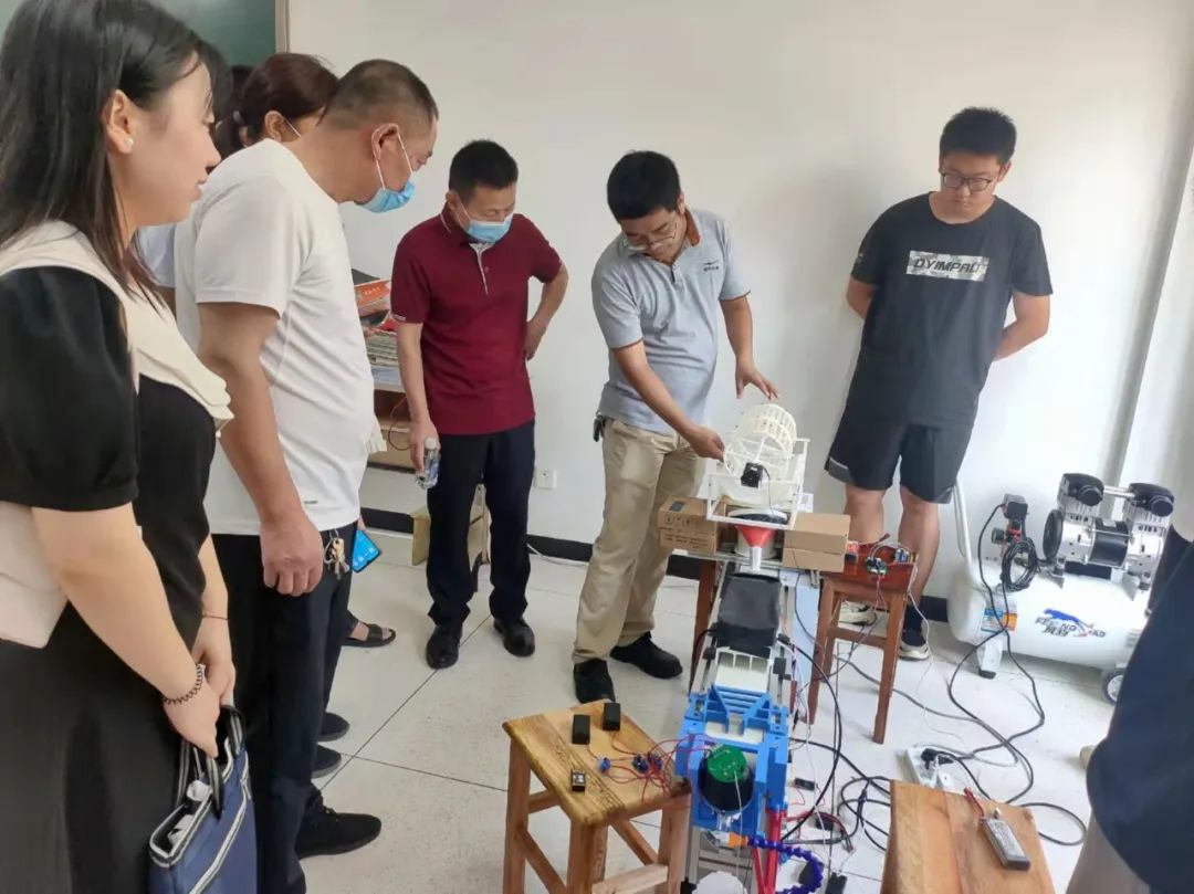 在本次参观交流中,李博士向大家现场演示了原理样机,其自研装备的分拣效果,各形各类的玻璃,在传送带上,通过光选和色选后,准确吹走了杂质和不同颜色的玻璃,留下了白玻,进一步验证算法的可行性。在金工实习工厂,宽敞的空间,成套成规模的机械加工设备,更是保证了设备加工制造能力。