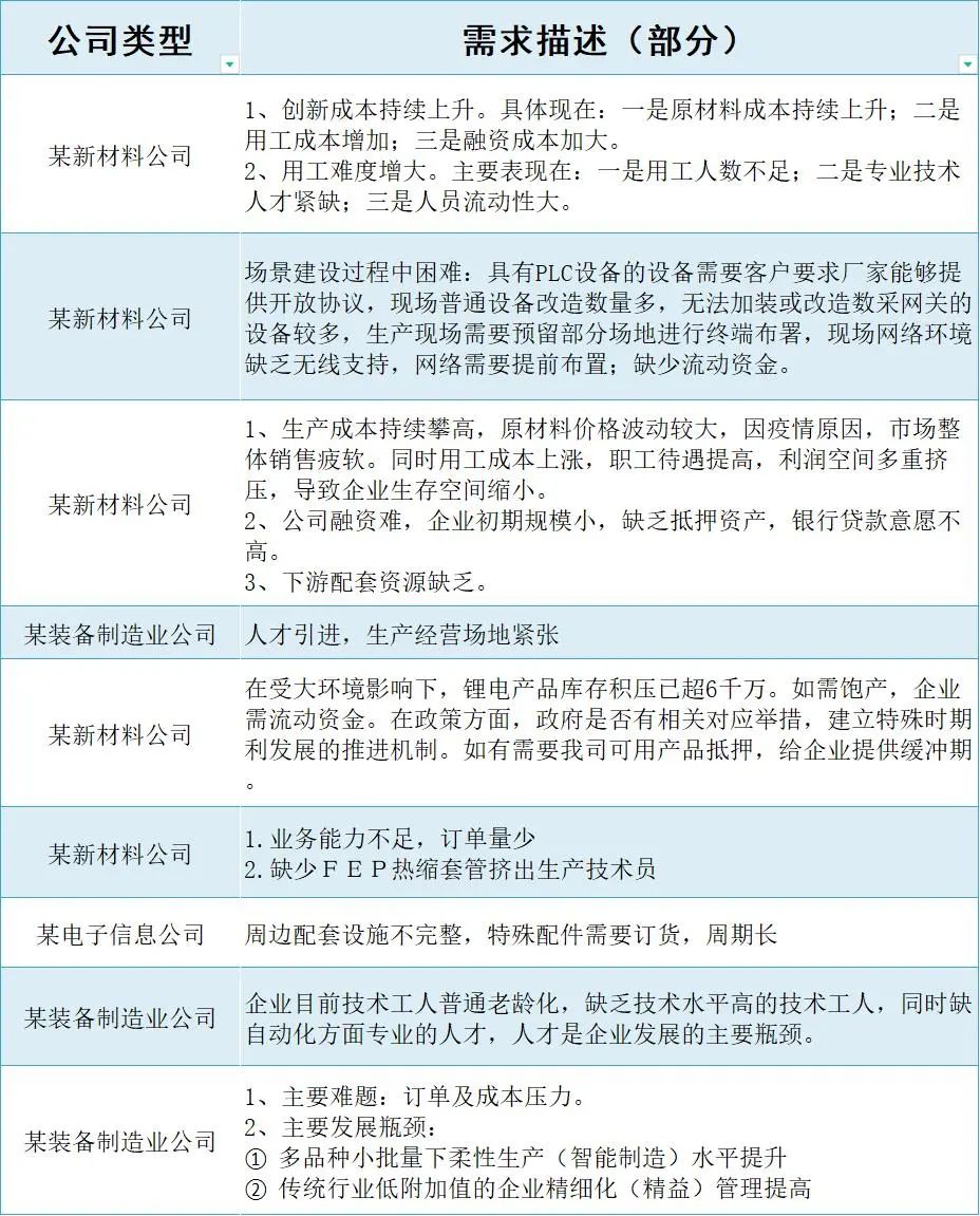 调研企业诉求(部分)